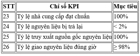 • Hệ thống KPI và dữ liệu vận hành minh bạch
