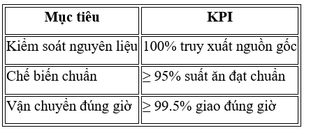• Tỷ lệ giao suất ăn đúng giờ ≥ 99.5%