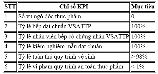 • Tỷ lệ suất ăn đạt chuẩn ≥ 95%