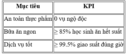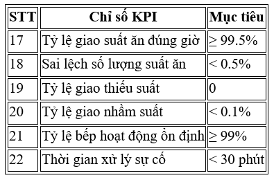 • Tỷ lệ giao suất ăn đúng giờ ≥ 99.5%