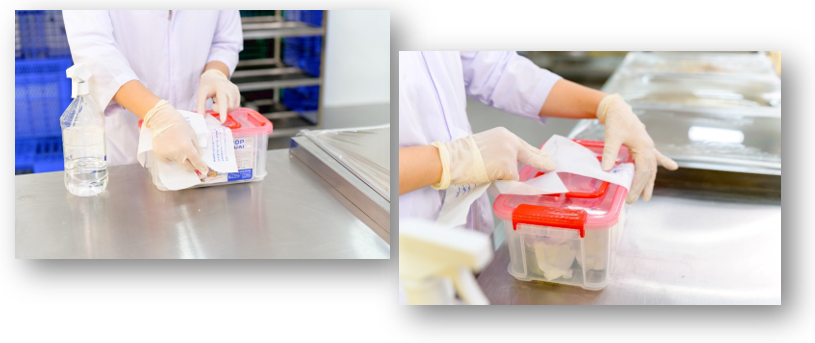 - Dán niêm phong hộp lưu mẫu thức ăn và hộp đựng lưu mẫu: